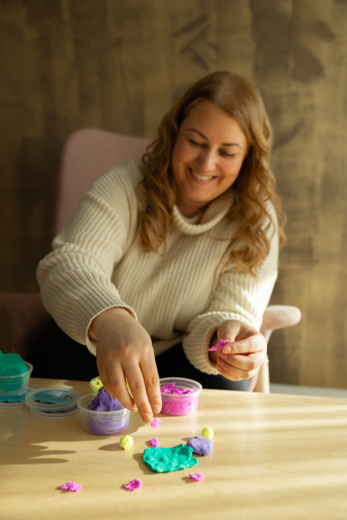 Työskentely on kokemuksellista: Luovuuden, kehollisuuden ja läsnäolon kautta pääsemme myös sanojen ja järkeilyn tuolle puolen – sinne, missä oivallukset syntyvät ja sisäinen viisaus saa tilaa tulla näkyväksi.